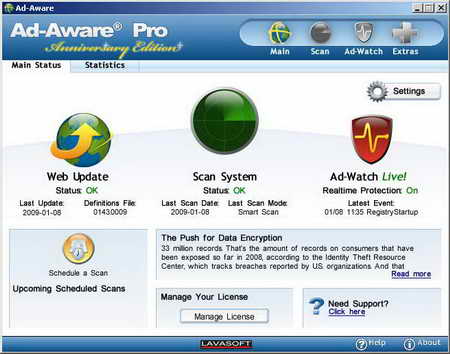 Ad-Aware是一款小巧易用的系統安全工具。它可以掃描你的內存,註冊表,硬盤和外