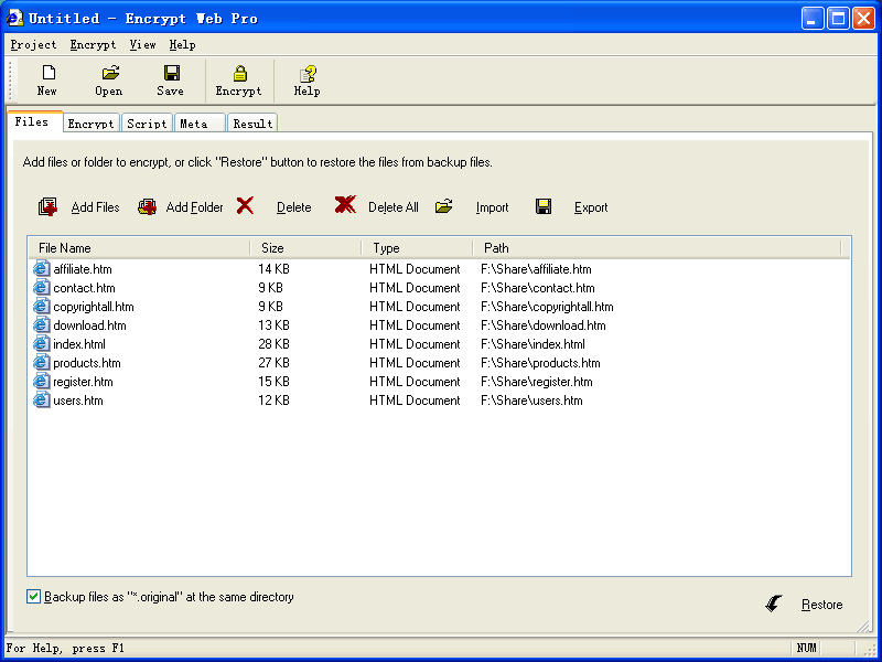 Encrypt Web Pro v2.0 WinALL 英文正式版(加密HTML源碼,保護HTML代碼和網頁的工具軟體)