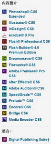 Suite 6」(簡稱CS6),包含四大套裝和十四個獨立程序。與此同時,Adobe還發佈了